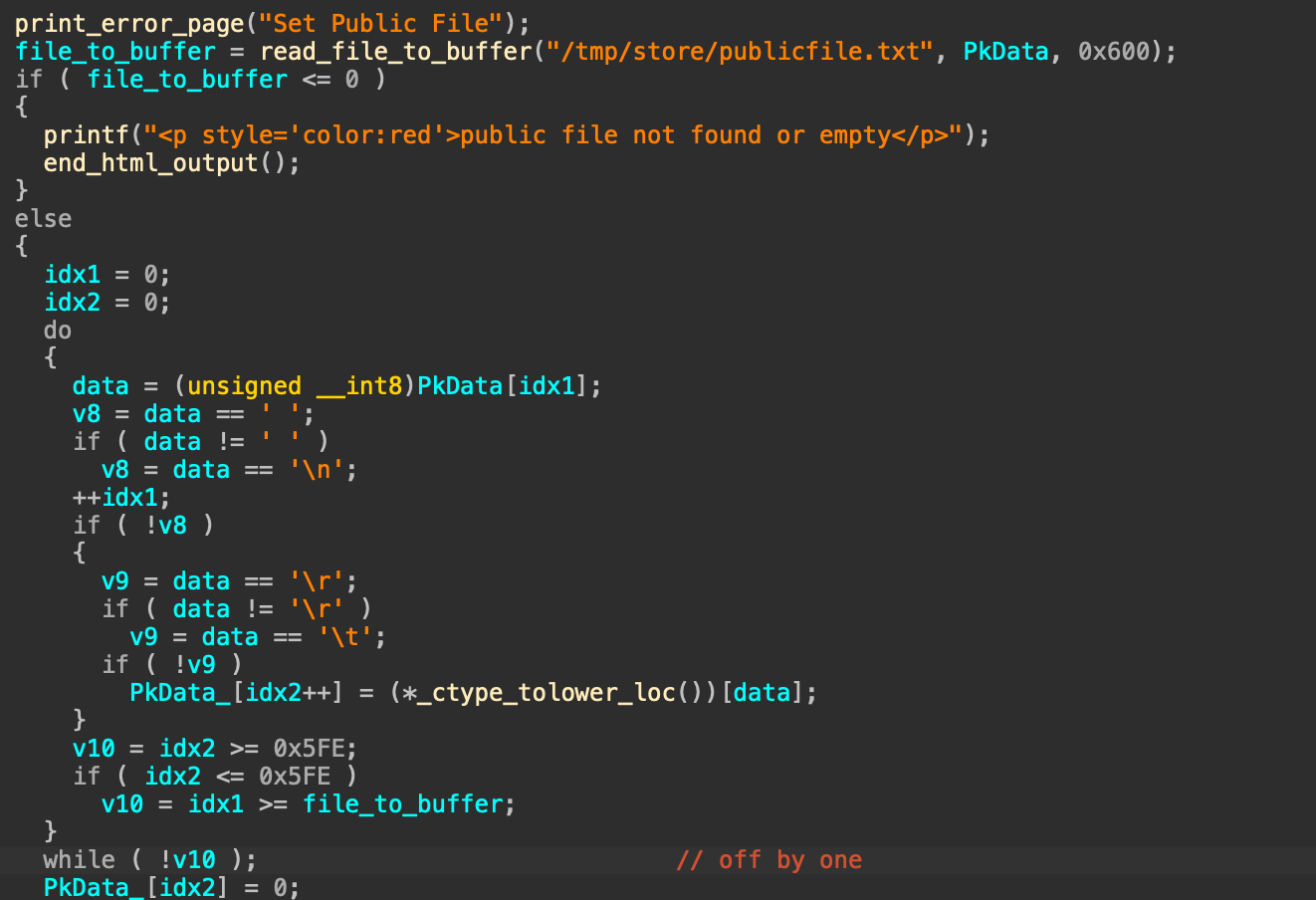 问题出现在setpkfunc中,这里会将/tmp/store/publicfile.txt的内容读出来,仔细看会发现存在一个off-by-one