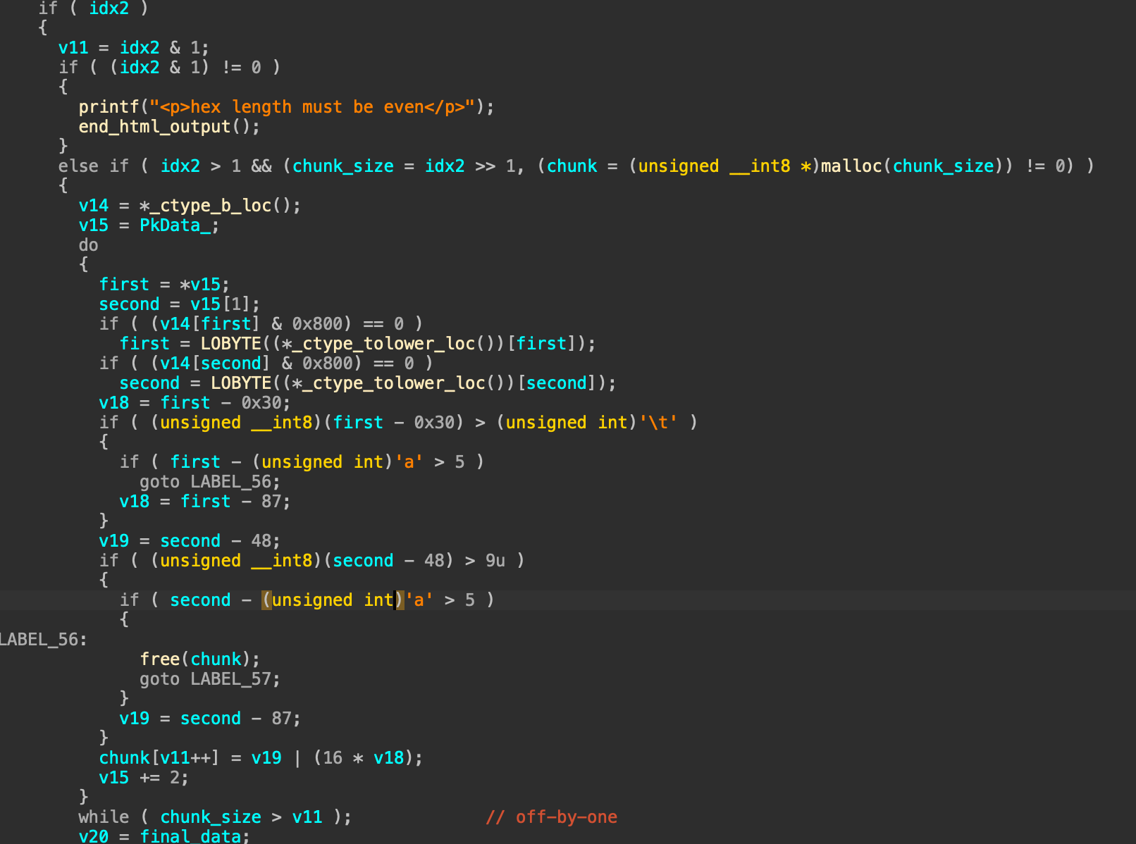 接着这里会有一个转化,就是转化为16进制的操作,同时仍然存在off-by-one
