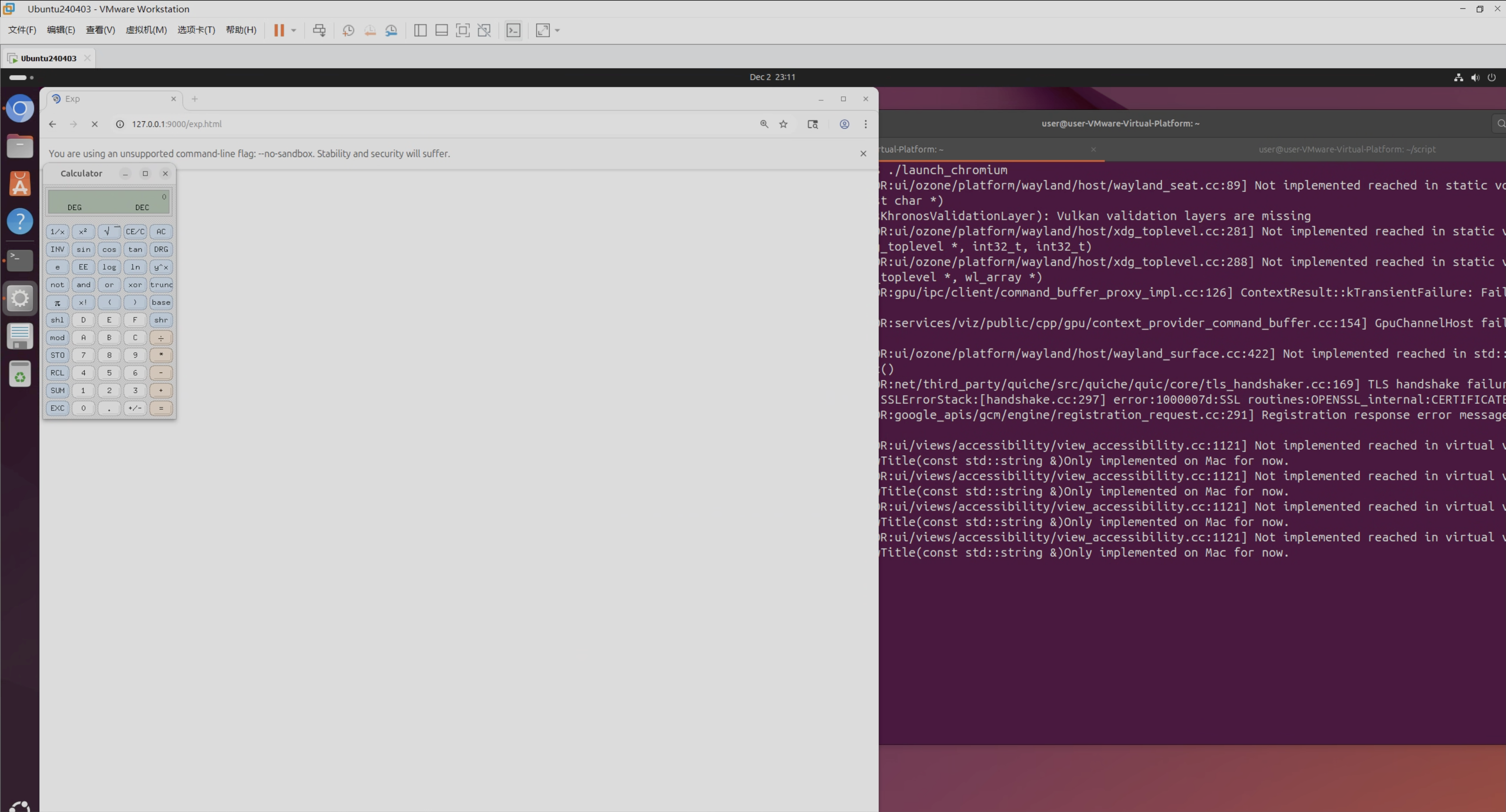 在比赛的当天下午6 7点钟这样,已经完成了第一个部分,但是此时笔者并不知道题目下发的虚拟机其实是没有的,因此后面花了大部分时间在v8的沙箱逃逸上😭……