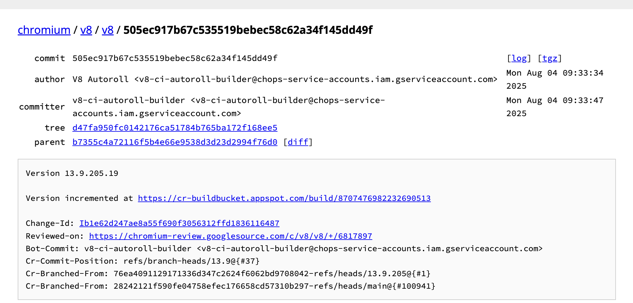 看到了v8的版本不算新,因此看了下commit hash,8月4号的提交,那么之前p0的Big sleep挖出来的CVE-2025-9132是可以直接打的,但是我没准备 :(